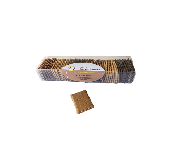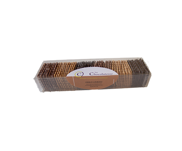 Découvrez notre réglette de 185 g de mini biscuits 100 % chocolat, déclinés en chocolat noir, lait et blond. Savourez une expérience gustative exquise et variée avec nos délicieuses gourmandises.